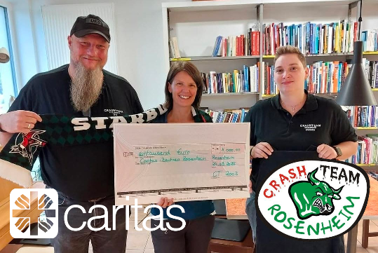 Das Crashteam Rosenheim durfte eine weitere Spende in Hohe von 1.000 € aus den Losverkäufen in den Fanbussen der vergangener Saison übergeben.